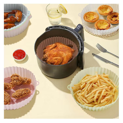 Cestello in Silicone vassoio rotondo rivestimento per friggitrice ad aria accessori per contenitore Pan stampo da forno scatola per pasticceria forma di protezione